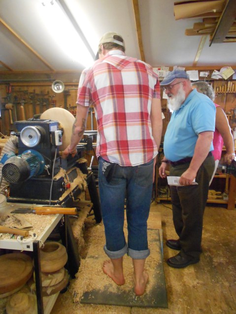 At East Hill Farm, in the woodworking shop, bare-footed craftsmen showed off their lathes.