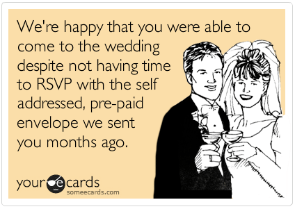 Now, am I innocent of the crime of not RSVPing to something, and then showing up? Absolutely not.