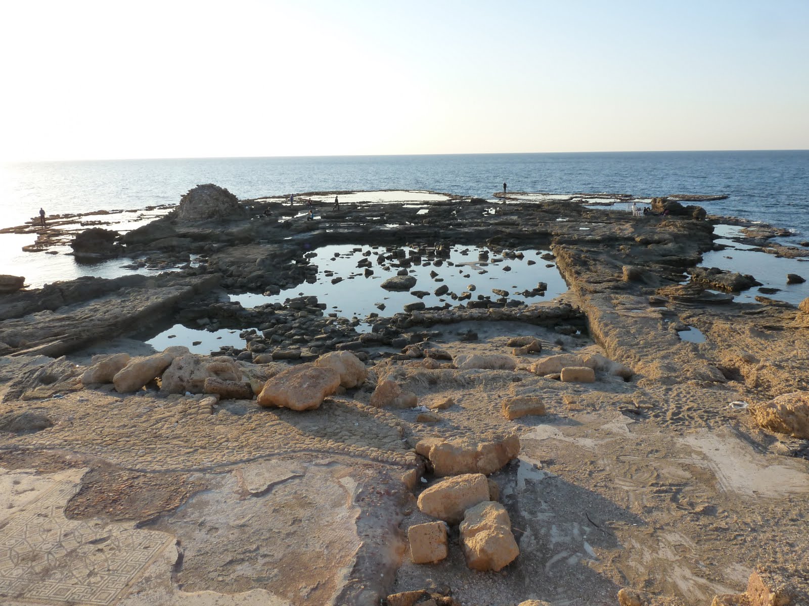 If we stood in this very spot about… 2000 years ago, we would be overlooking the patio of King Herod’s prime real estate beachfront palace, watching him sunbathe by his freshwater pool. Umbrella drink in hand.