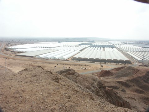 Hundreds of greenhouses line the Negev Desert and grow crops year around. The greenhouses are completely computerized so as not to create any error in the cultivation the plants. Peppers, eggplants, and tomatoes are the main crops grown here.