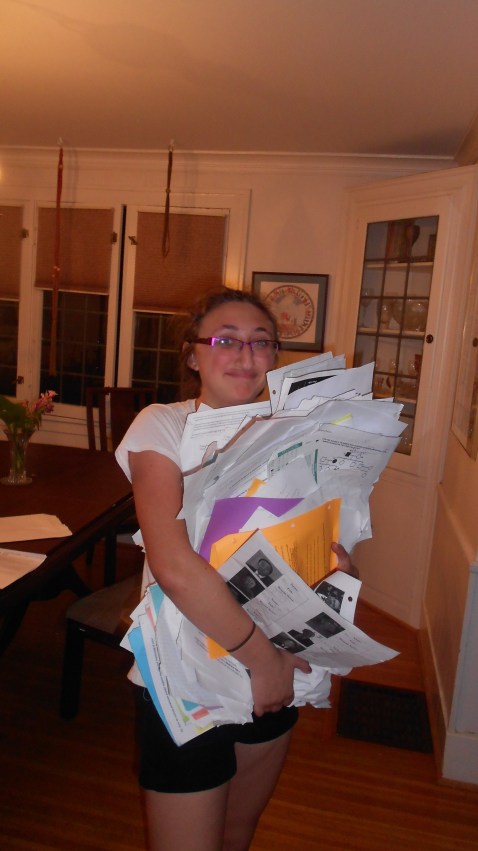 Her arms were full of a year’s worth of notes. Her entire Freshman year of high school. A tree’s worth of it, was piled in her arms and about to topple over.