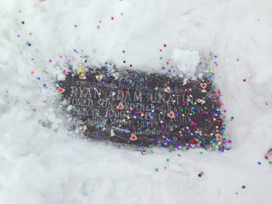 Joe Winter makes sure Ryan Unatin’s headstone is clear each Valentine’s Day. pation caring for cemetery grounds “just as interesting as any other landscaping position.”