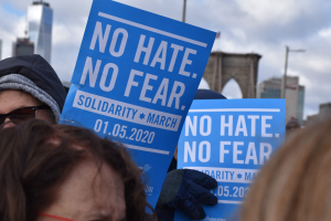 An estimated 25,000 people marched from Manhattan’s City Hall over the Brooklyn Bridge on January 5, 2020. The message from the group organizers – mainly Jewish alphabet groups like UJA, AJC, ADL and JCRC – was “No Hate. No Fear.” The signs were everywhere, but few of the marchers uttered the words.