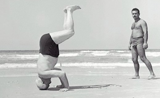Then, as I am trying to get through a chapter of the Golden Age of Spain, he stands on his head.