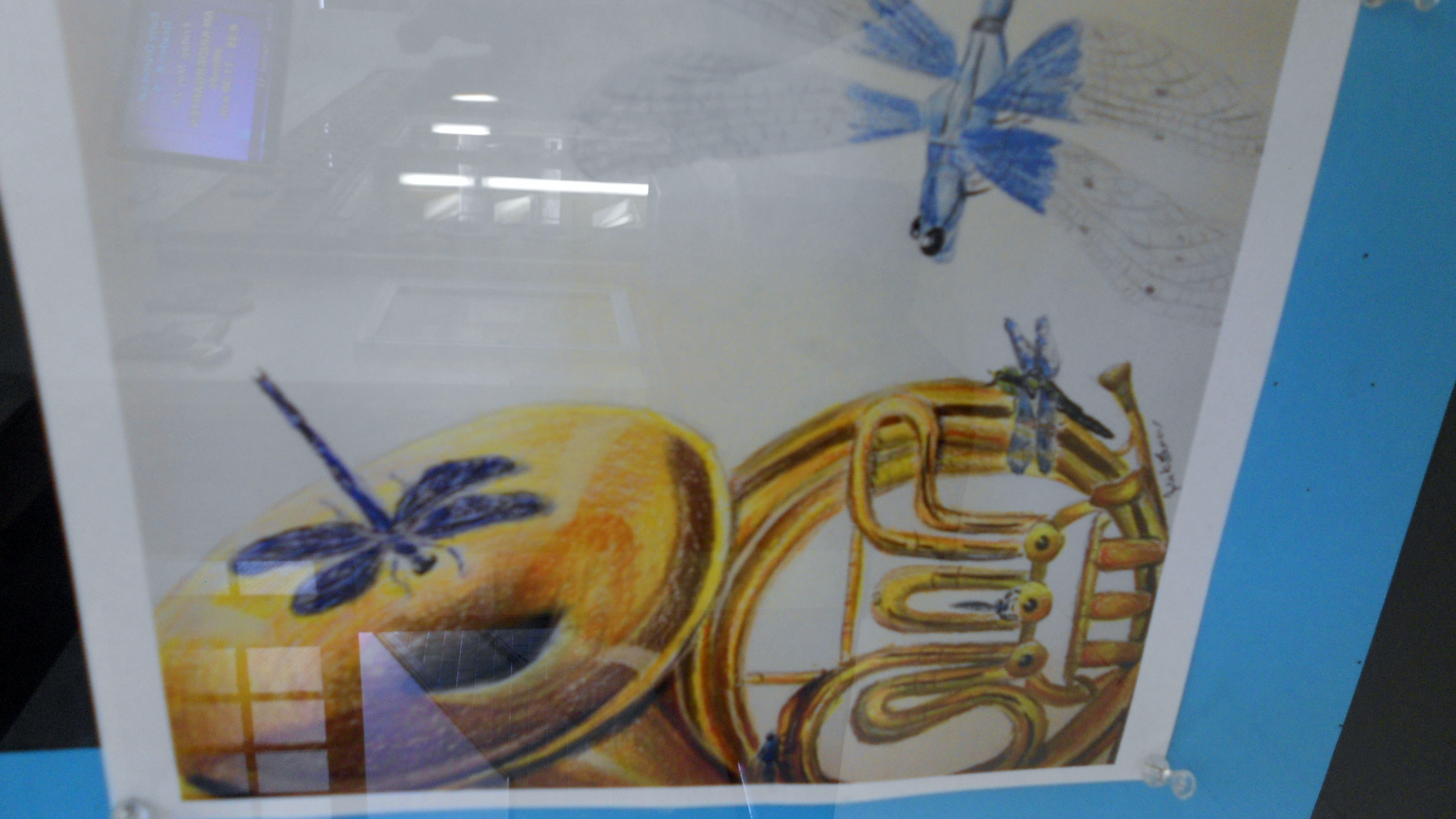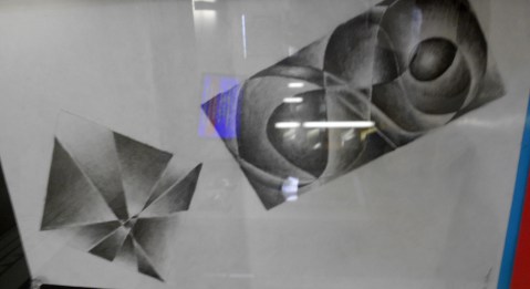 My daughter, my sloppy, beautiful brilliant, talented daughter, is featured artist of the week in her high school: I shot the following on my iTouch through the display glass so forgive me for the amateurish glare: